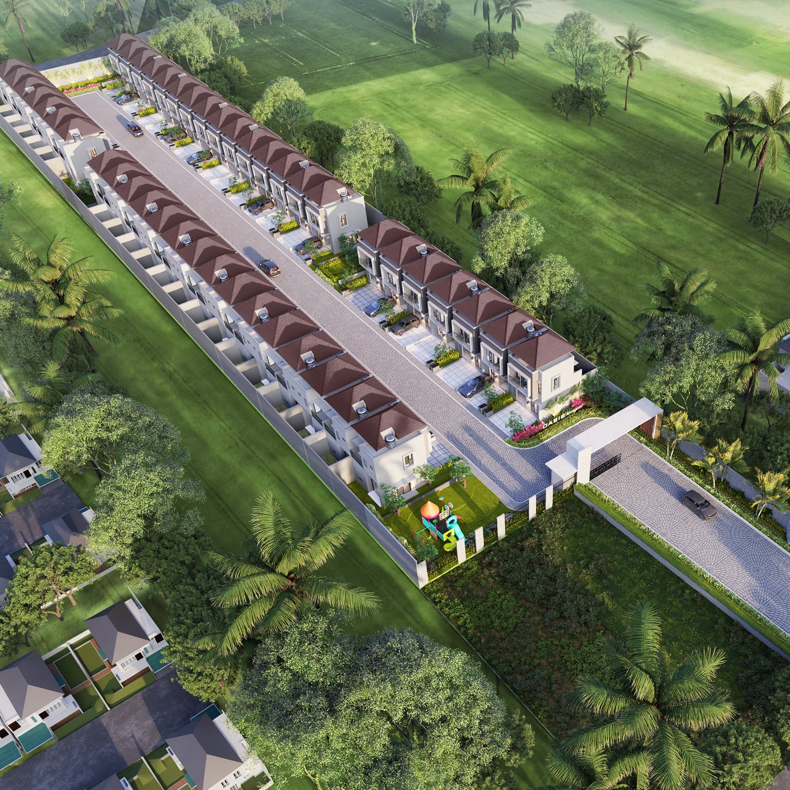 Hunian dengan konsep perpaduan unsur alam dan ruang terbuka hijau serta taman bermain anak.